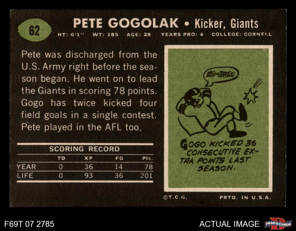 1969 Topps #62 Pete Gogolak 4 - VG/EX