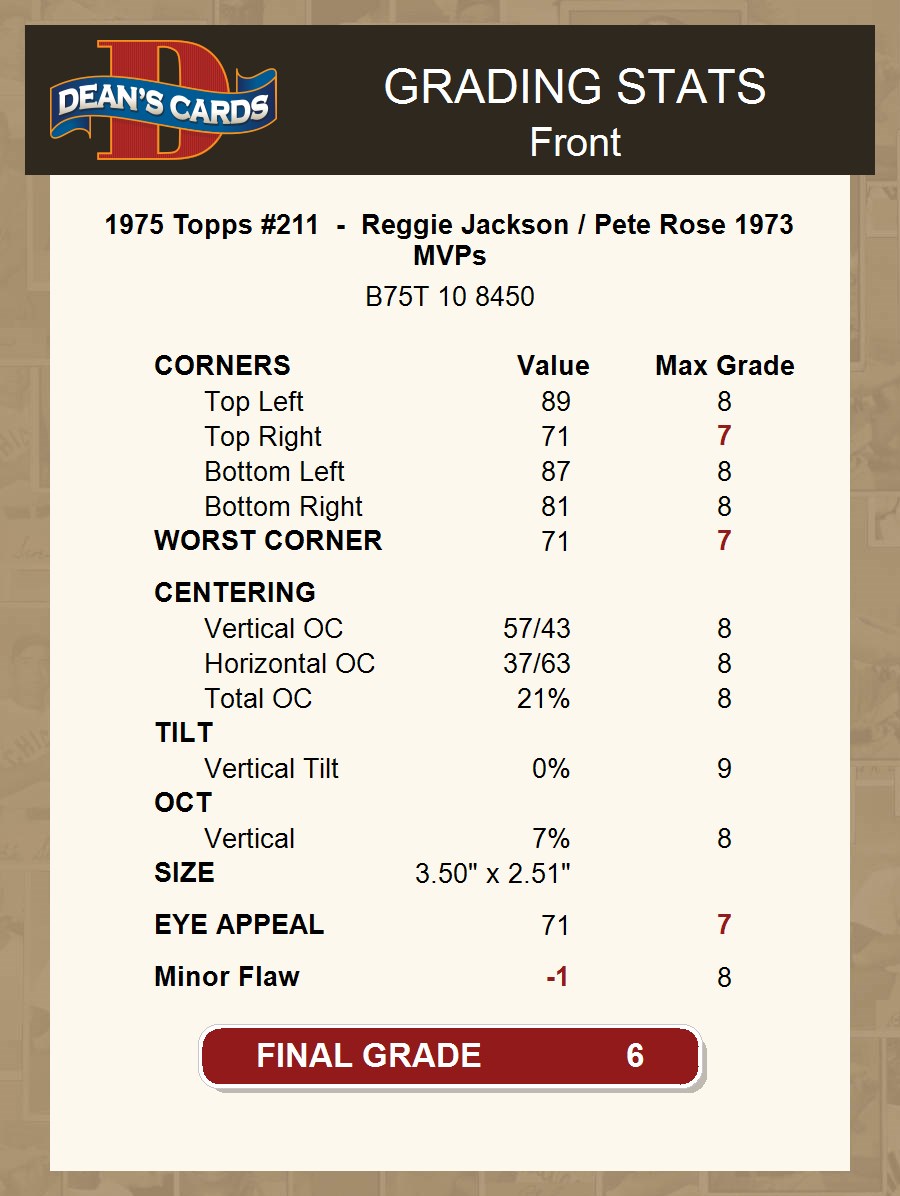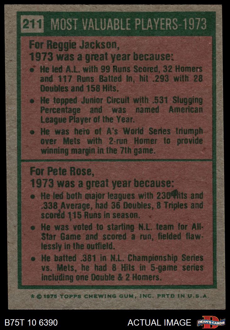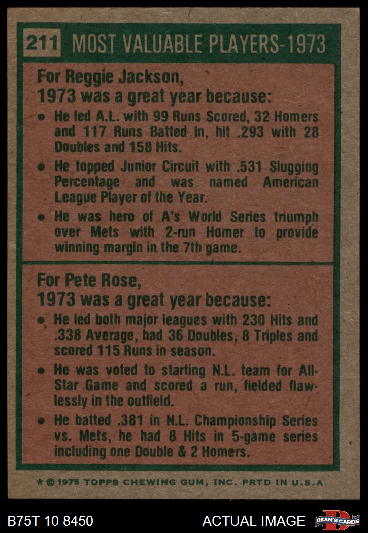 1975 Topps #211 - Reggie Jackson / Pete Rose 1973 MVPs 6 - EX/MT