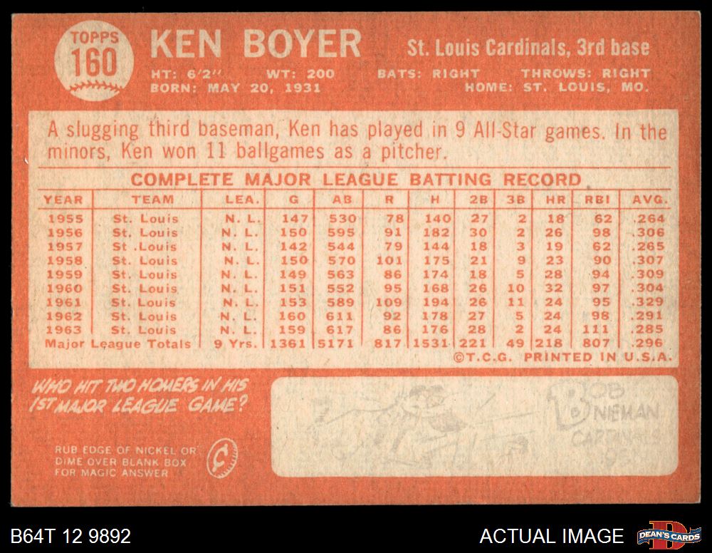 1964 Topps #160 Ken Boyer
