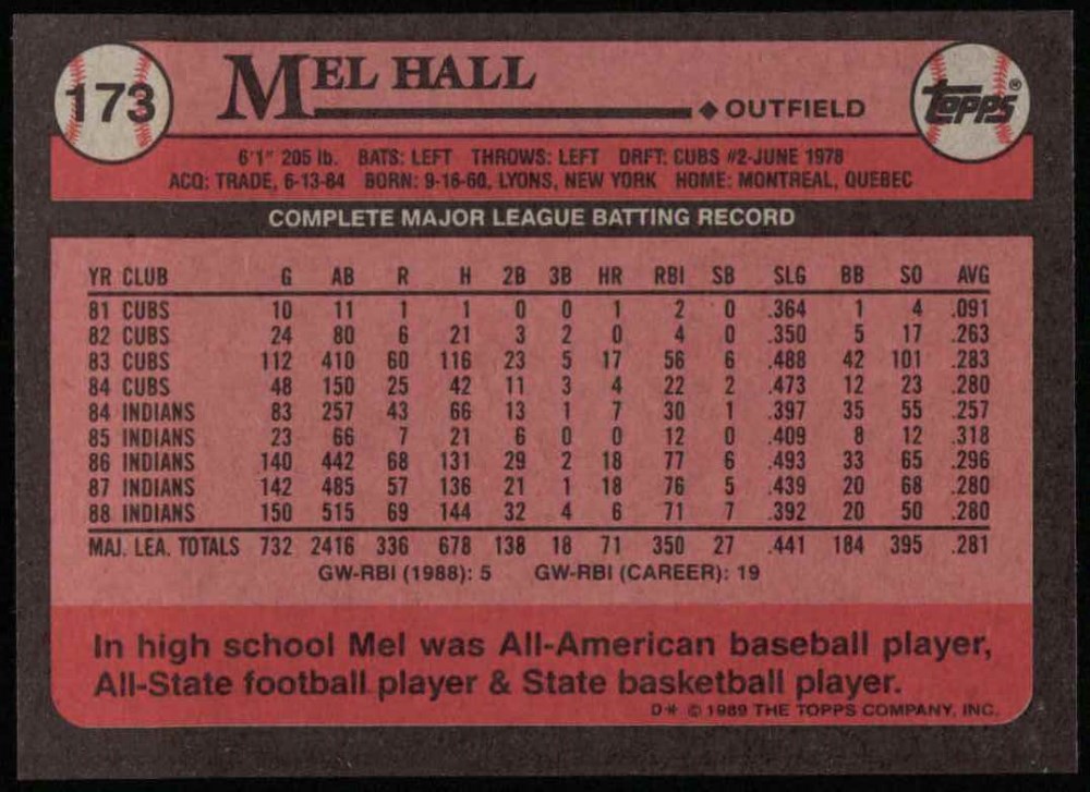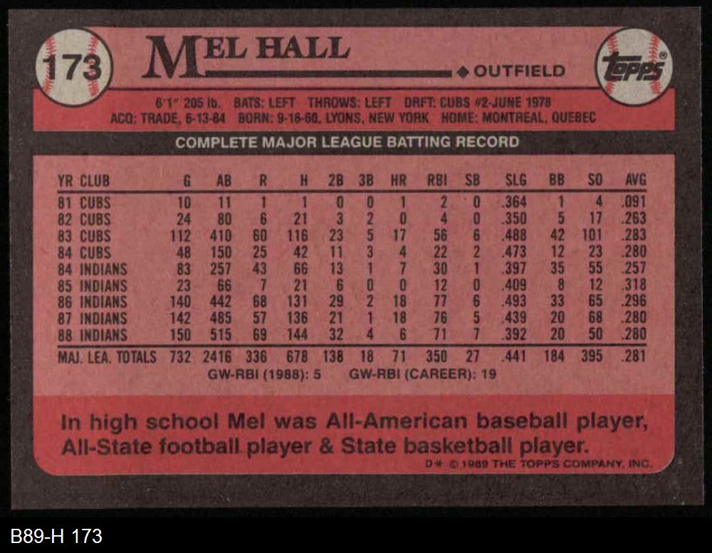1989 Topps #173 Mel Hall
