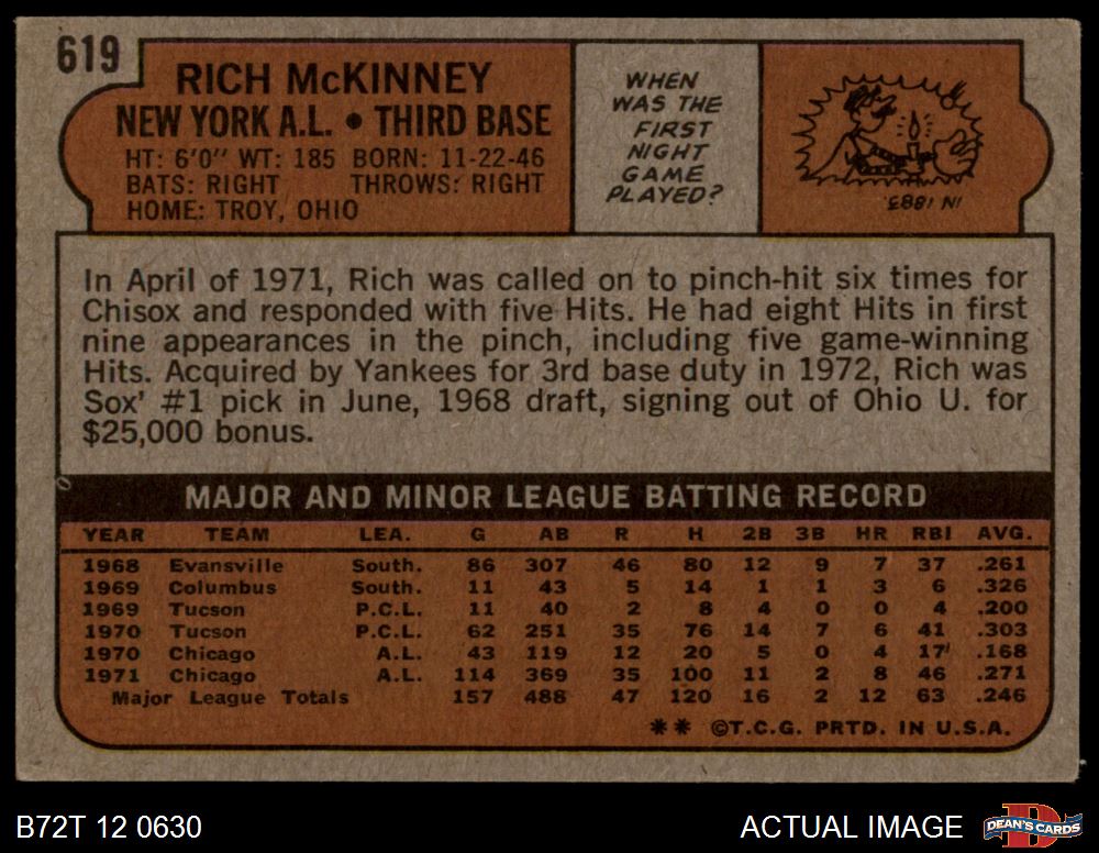 1972 Topps #619 Rich McKinney