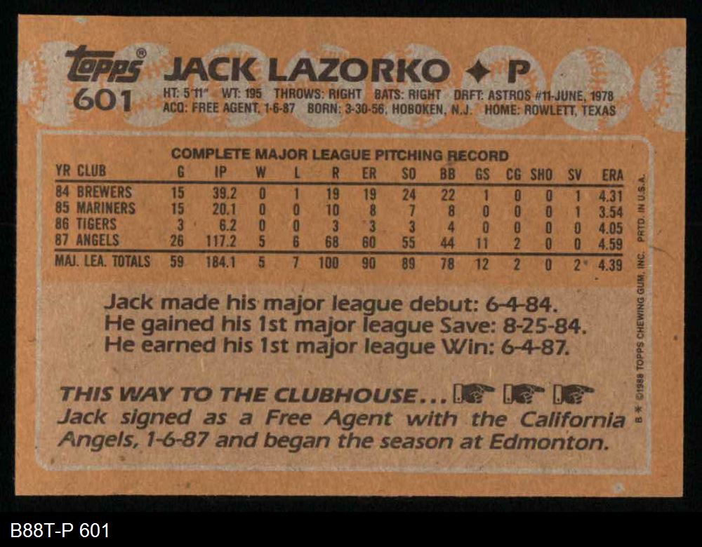 1988 Topps #601 Jack Lazorko 8 - NM/MT