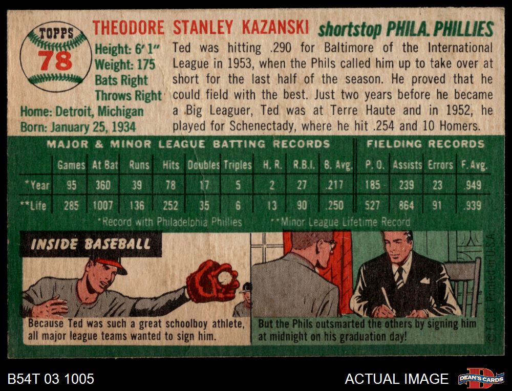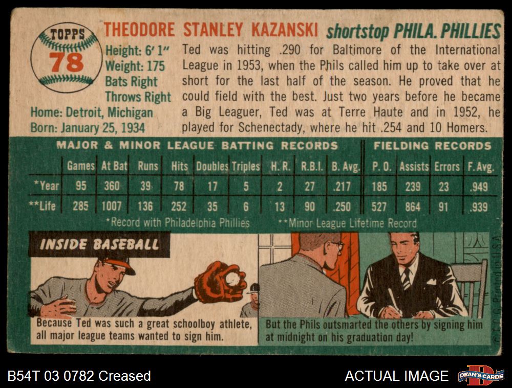 1954 Topps #78 Ted Kazanski 1.5 - FAIR