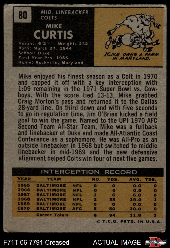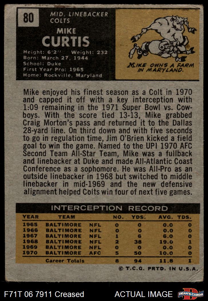 1971 Topps #80 Mike Curtis 2 - GOOD