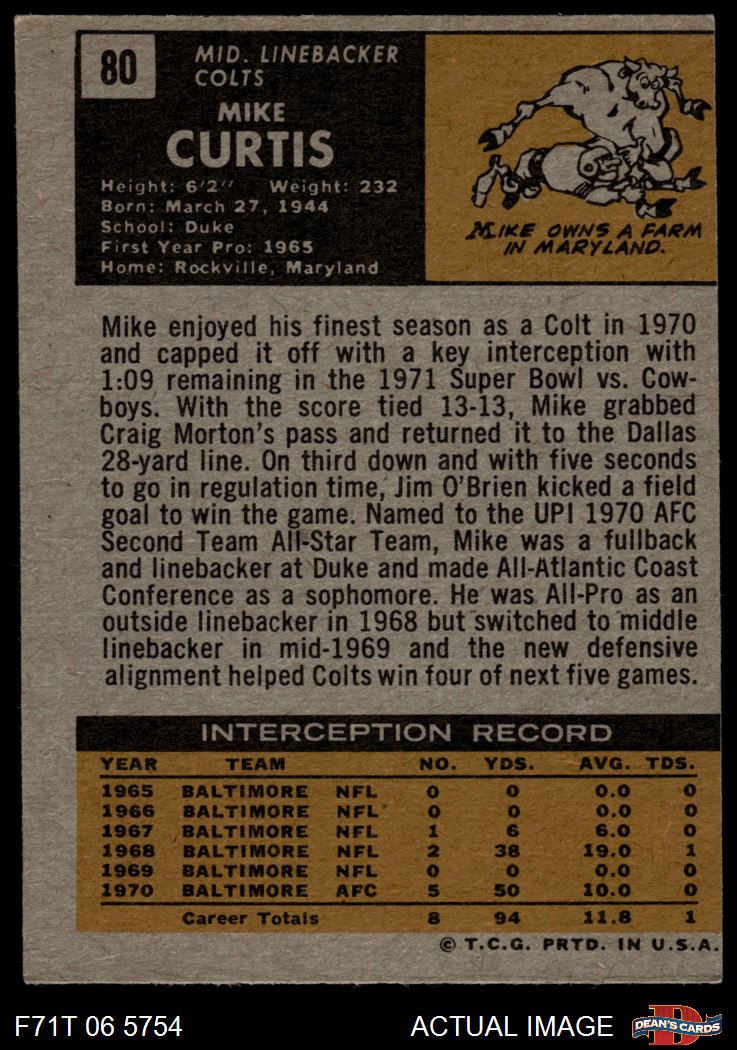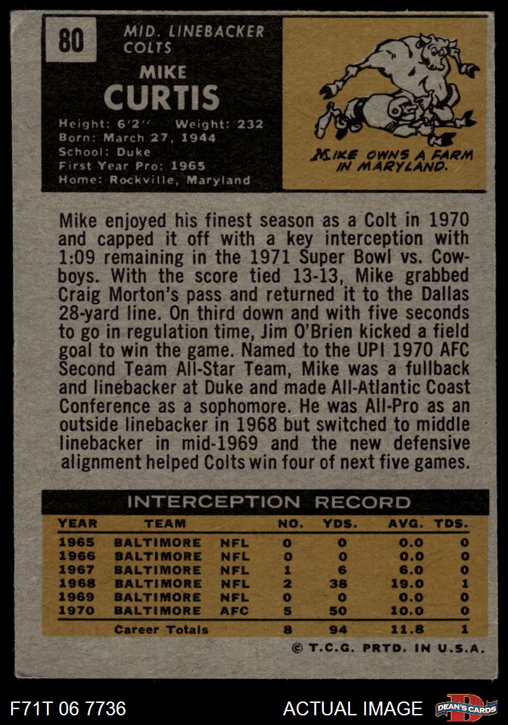 1971 Topps #80 Mike Curtis 3 - VG