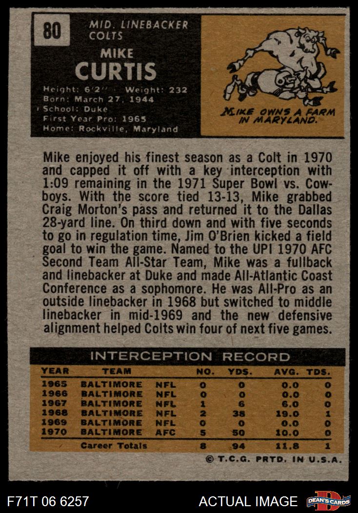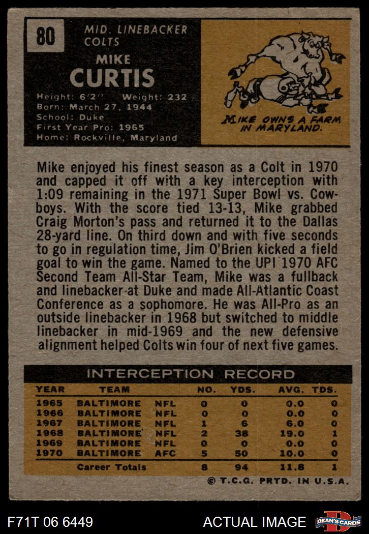 1971 Topps #80 Mike Curtis 6 - EX/MT