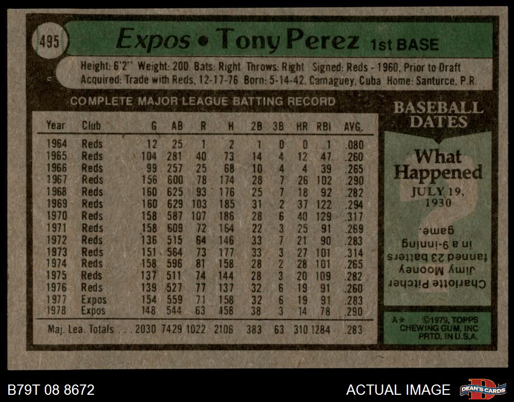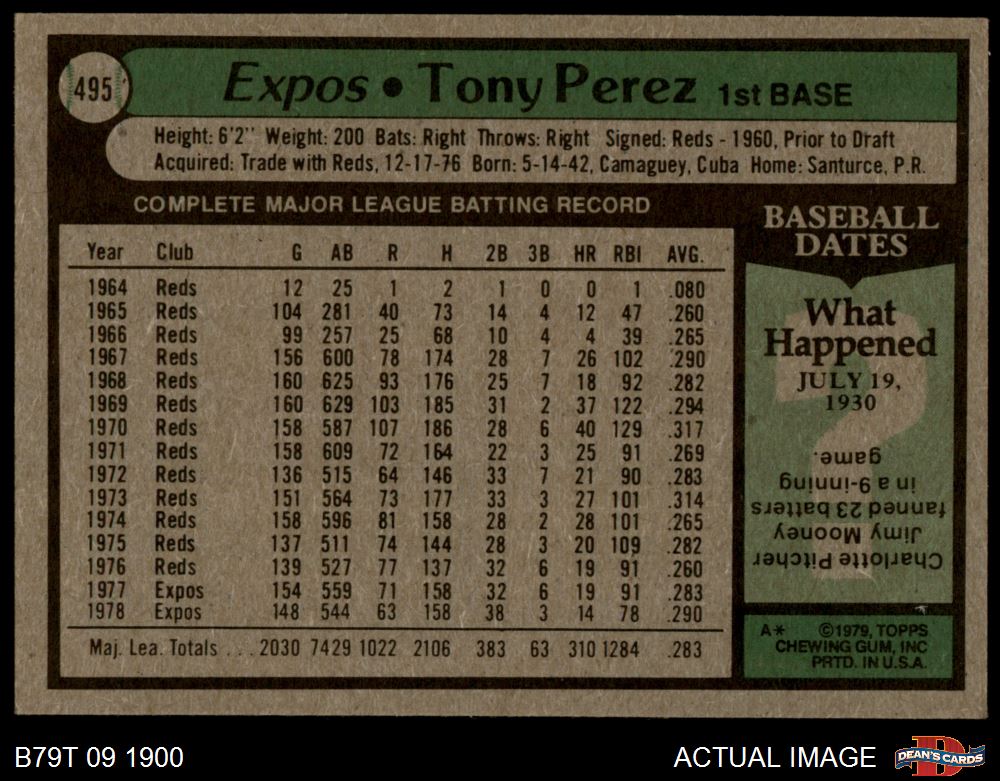 1979 Topps #495 Tony Perez