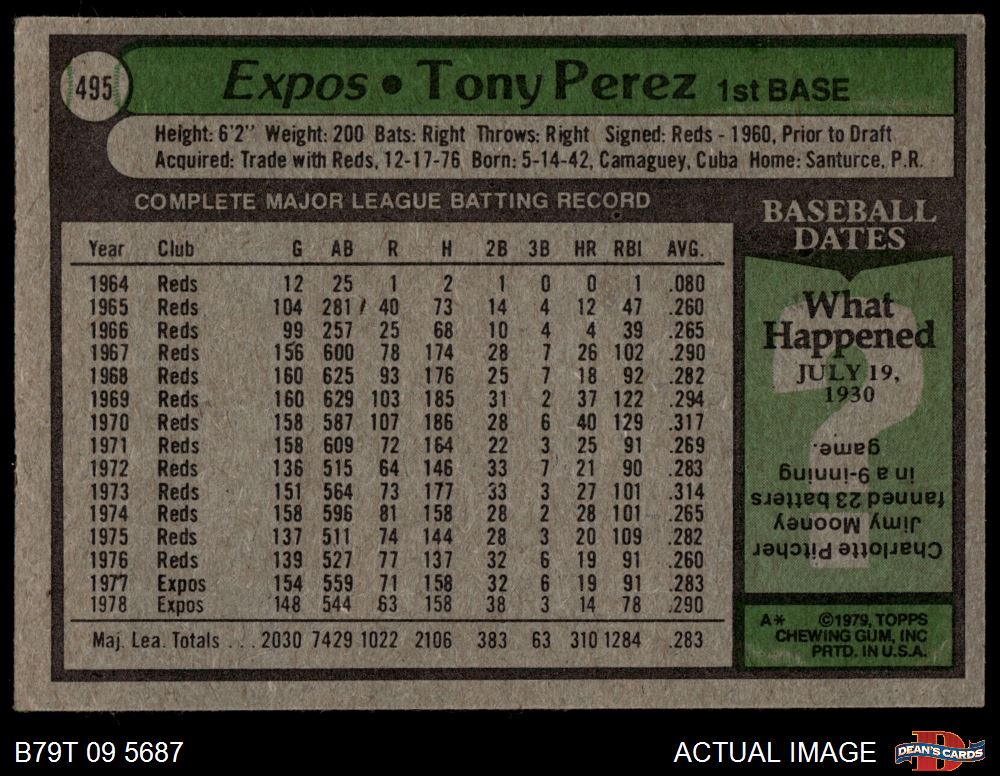 1979 Topps #495 Tony Perez 5 - EX