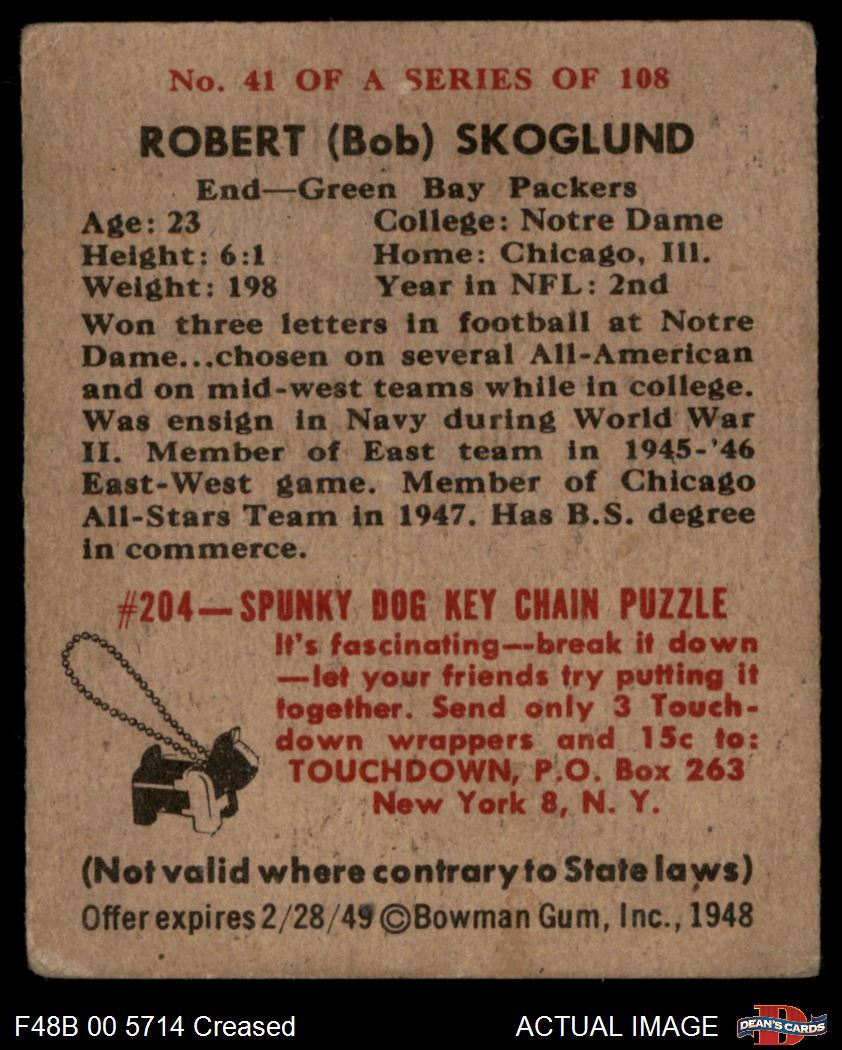 1948 Bowman #41 Bob Skoglund 2 - GOOD