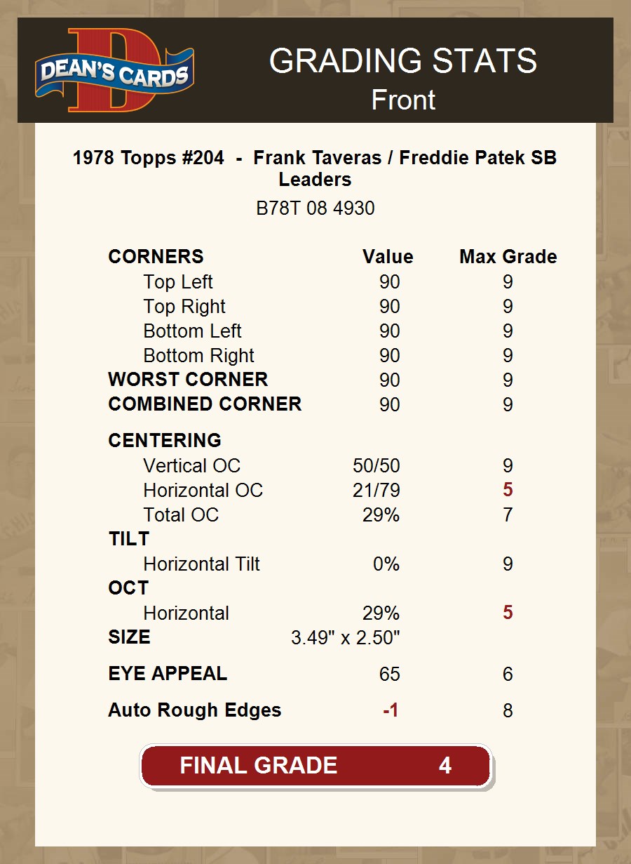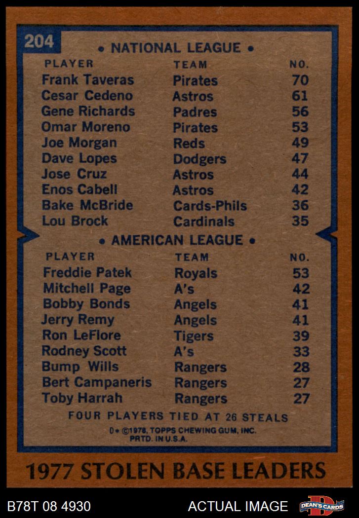 1978 Topps #204 - Frank Taveras / Freddie Patek SB Leaders 4 - VG/EX