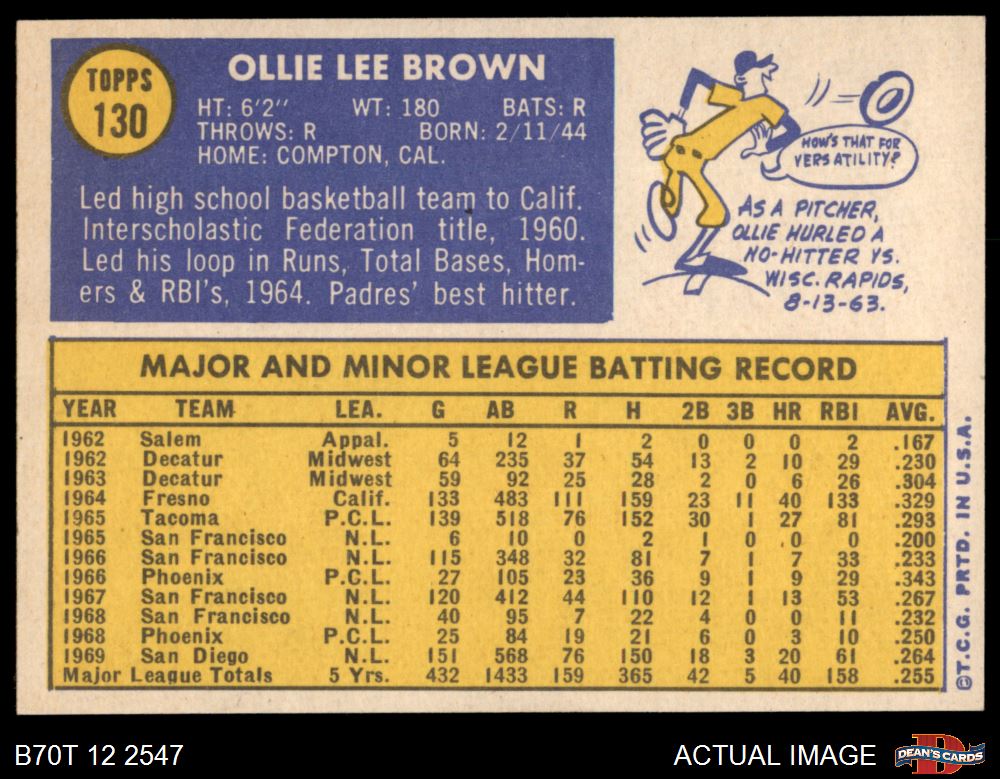 1970 Topps #130 Ollie Brown 8 - NM/MT