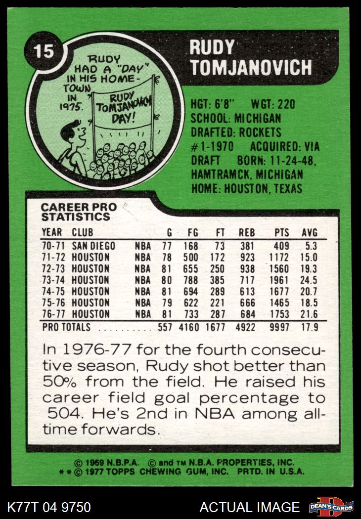 1977 Topps #15 Rudy Tomjanovich 5 - EX