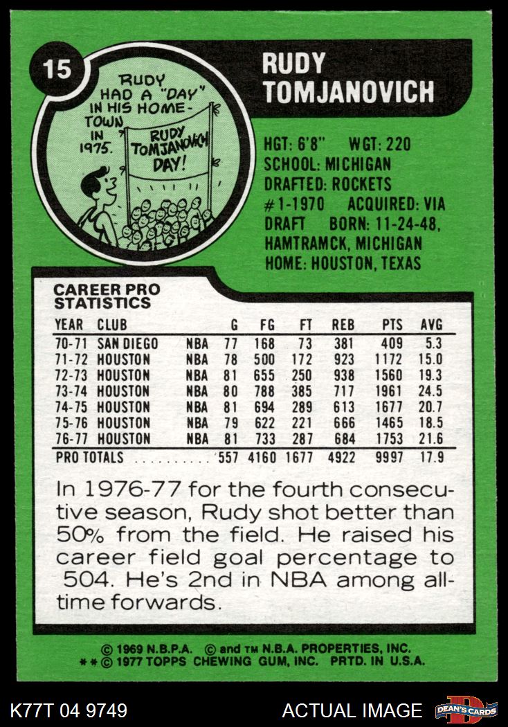 1977 Topps #15 Rudy Tomjanovich 8 - NM/MT