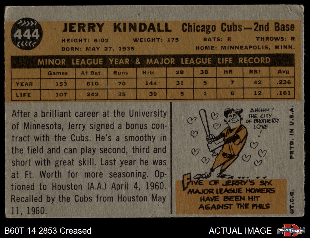 1960 Topps #444 Jerry Kindall Front Thumbnail