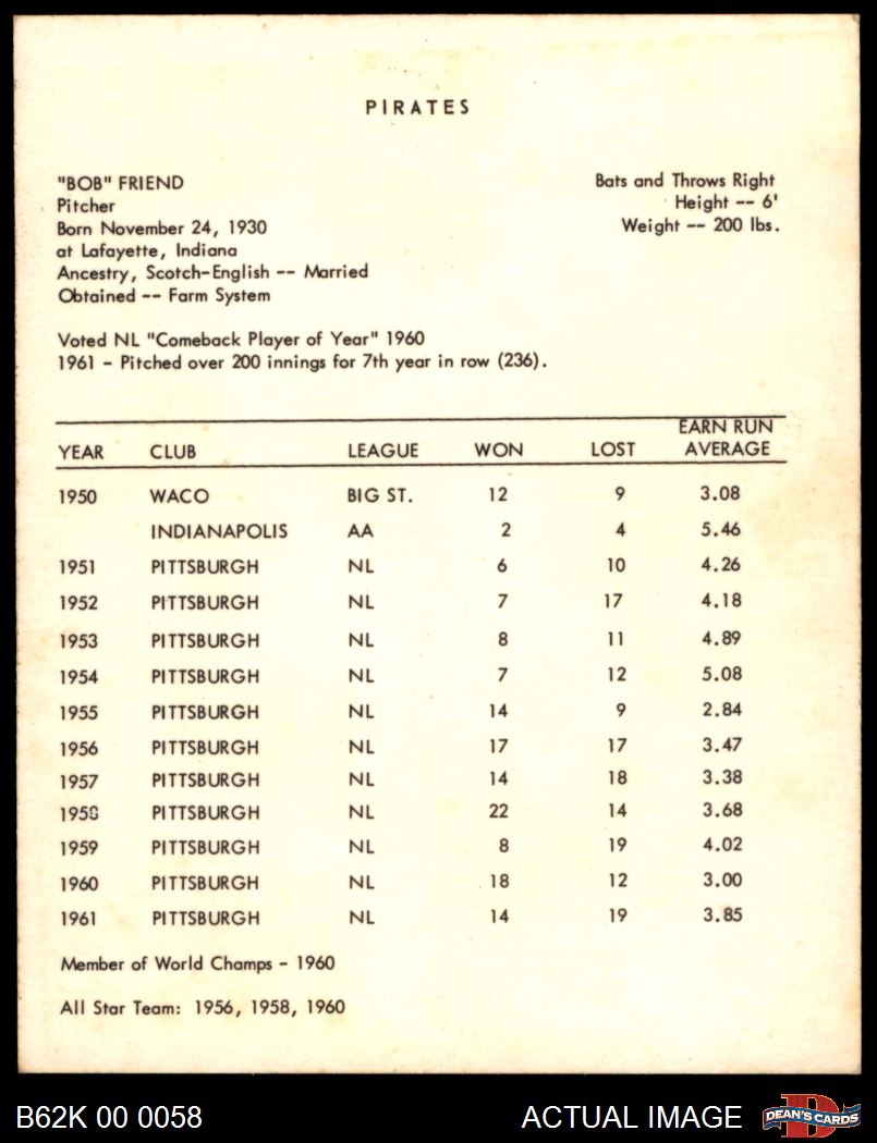 1962 Kahn's Bob Friend