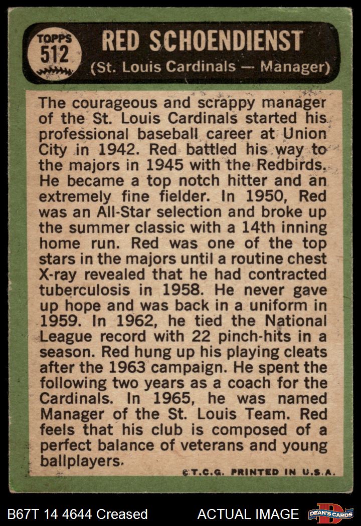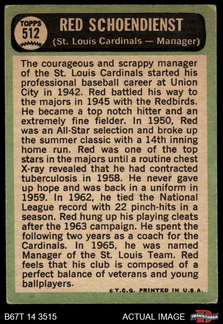 1967 Topps #512 Red Schoendienst 2 - GOOD