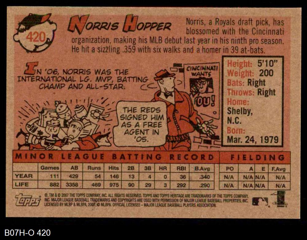 2007 Topps Heritage #420 Norris Hopper 8 - NM/MT