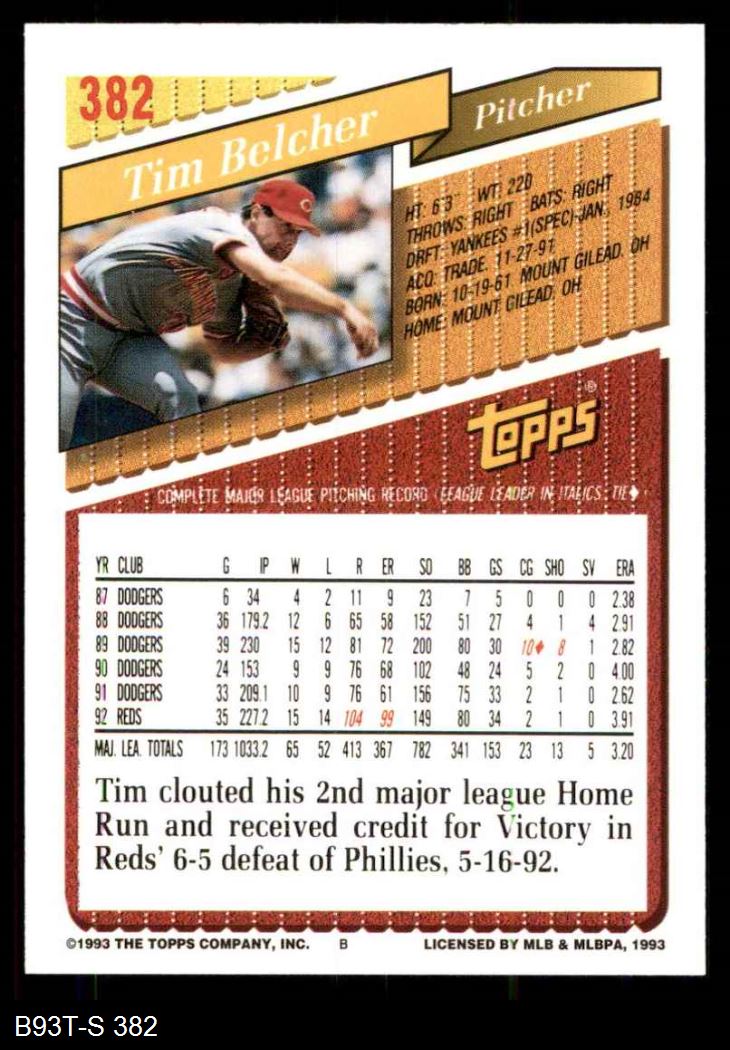 1993 Topps #382 Tim Belcher