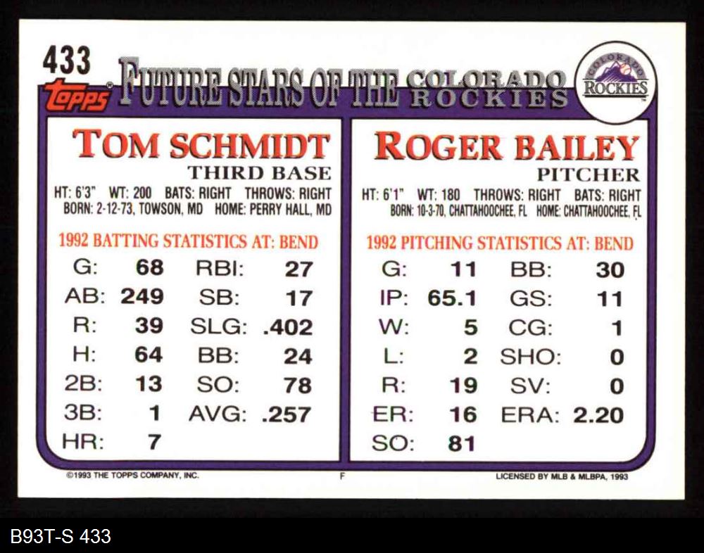 1993 Topps Baseball Cards (4,457 available)1993 Topps Rockies (215 available)
