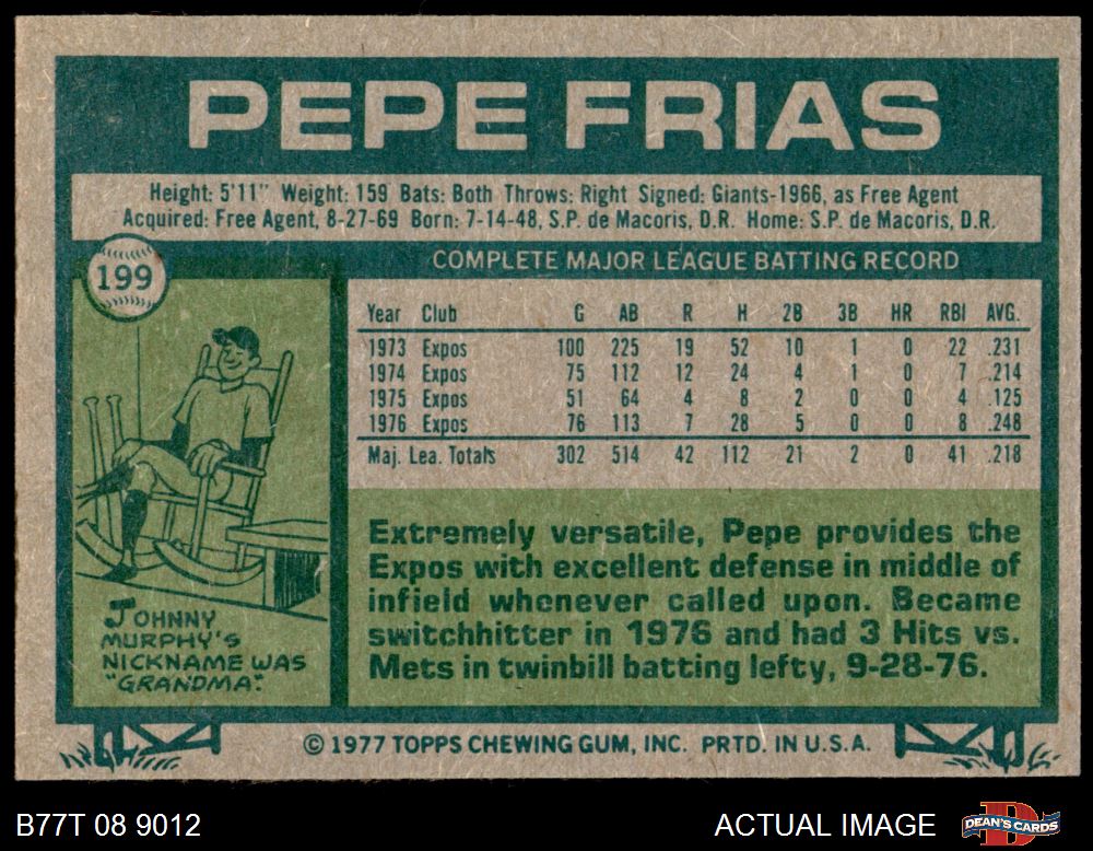 1977 Topps #199 Pepe Frias 4 - VG/EX