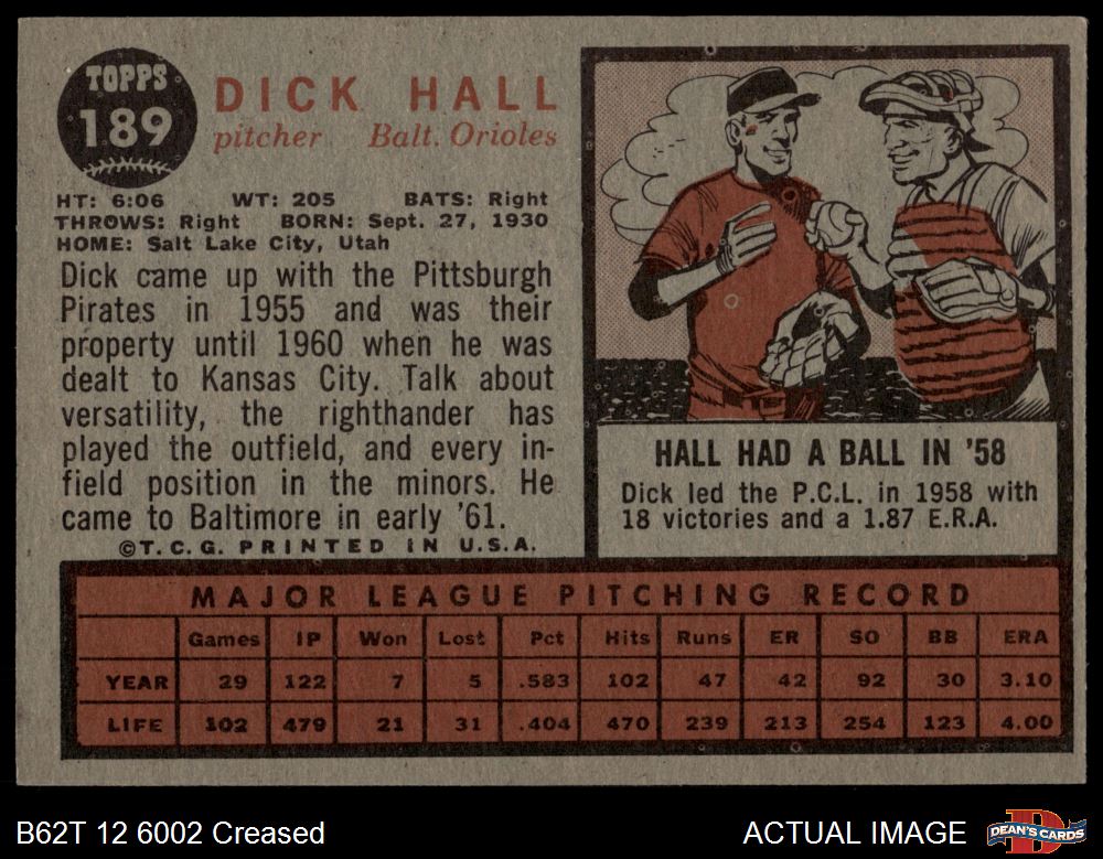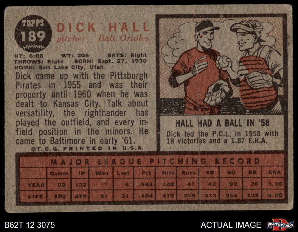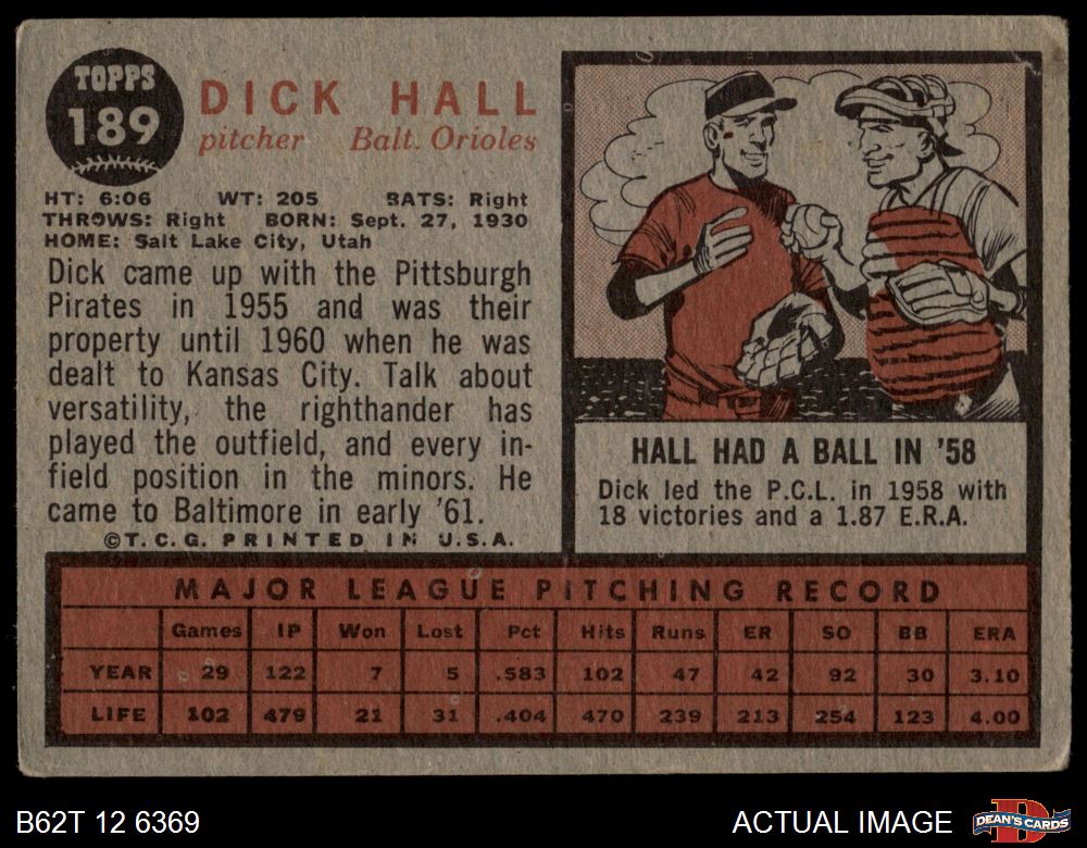 1962 Topps #189 NRM Dick Hall Front Thumbnail