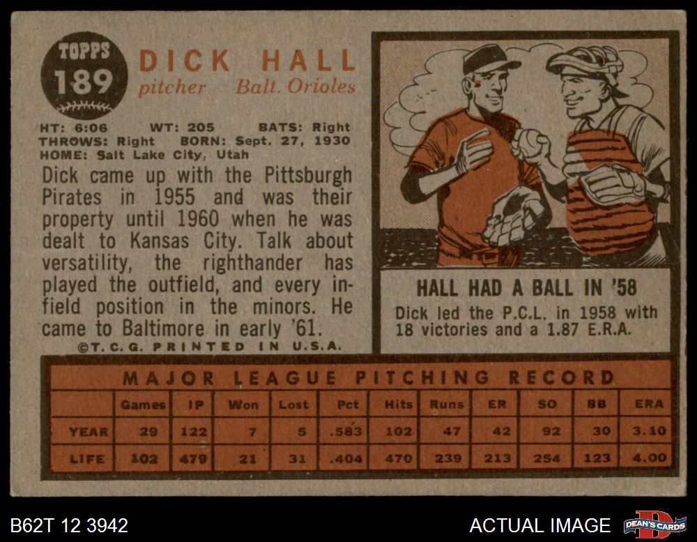 1962 Topps #189 NRM Dick Hall 4 - VG/EX