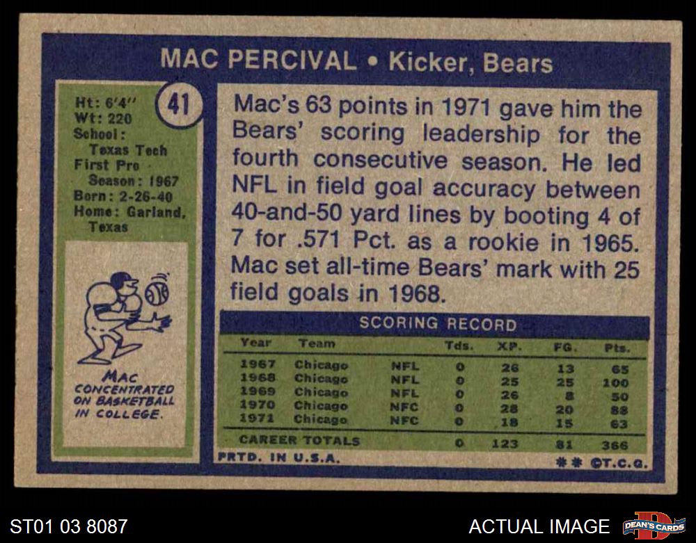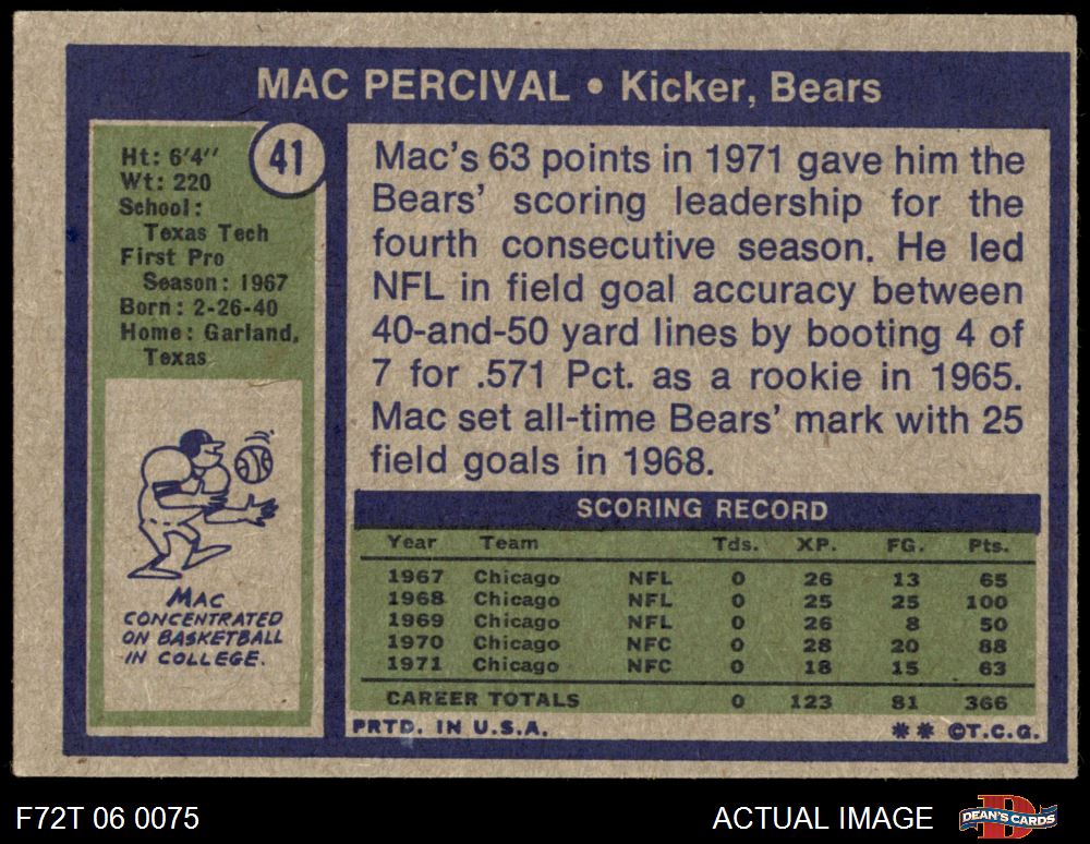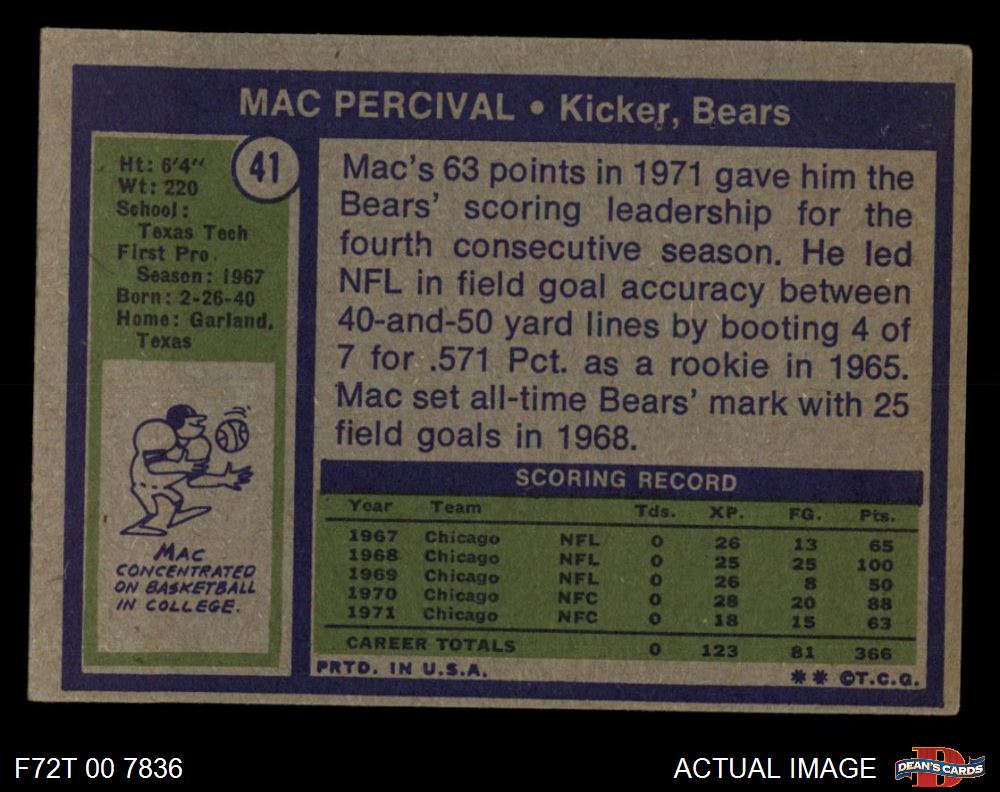 1972 Topps #41 Mac Percival