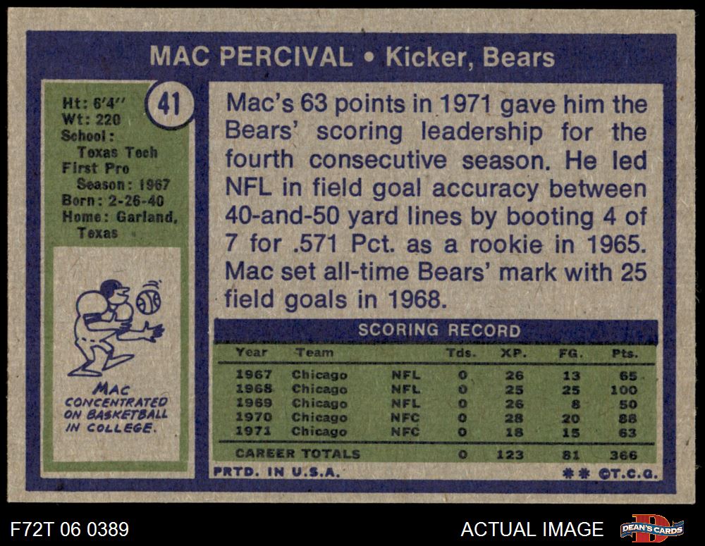 1972 Topps Football Cards (6,874 available)1972 Topps Bears (326 available)