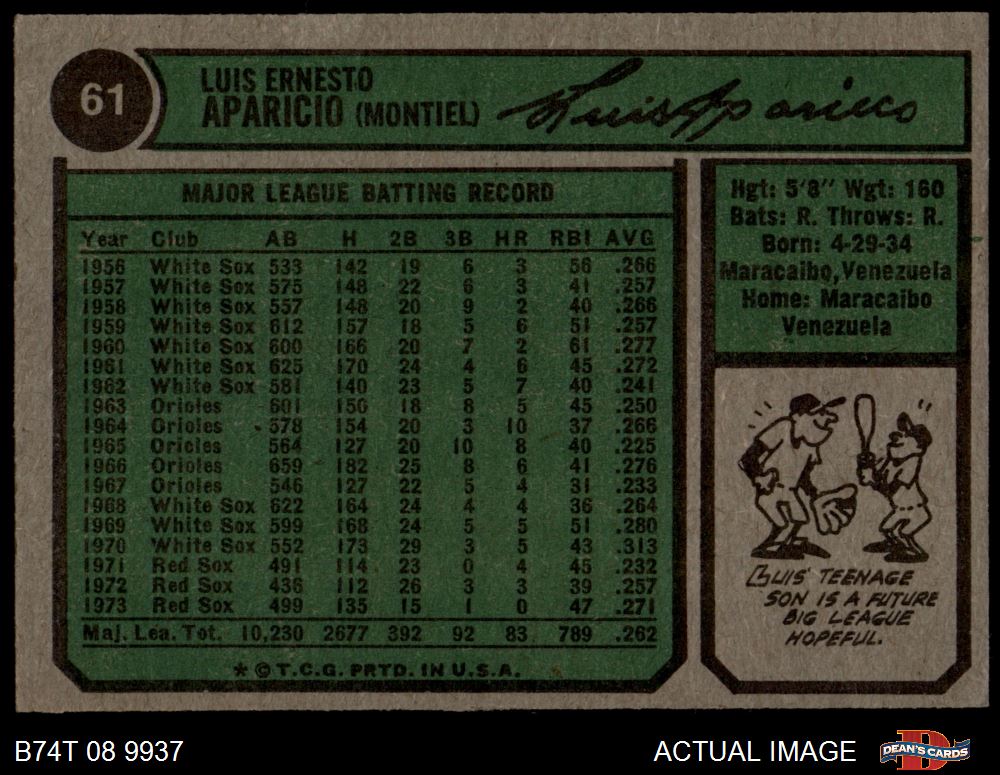 1974 Topps #61 Luis Aparicio