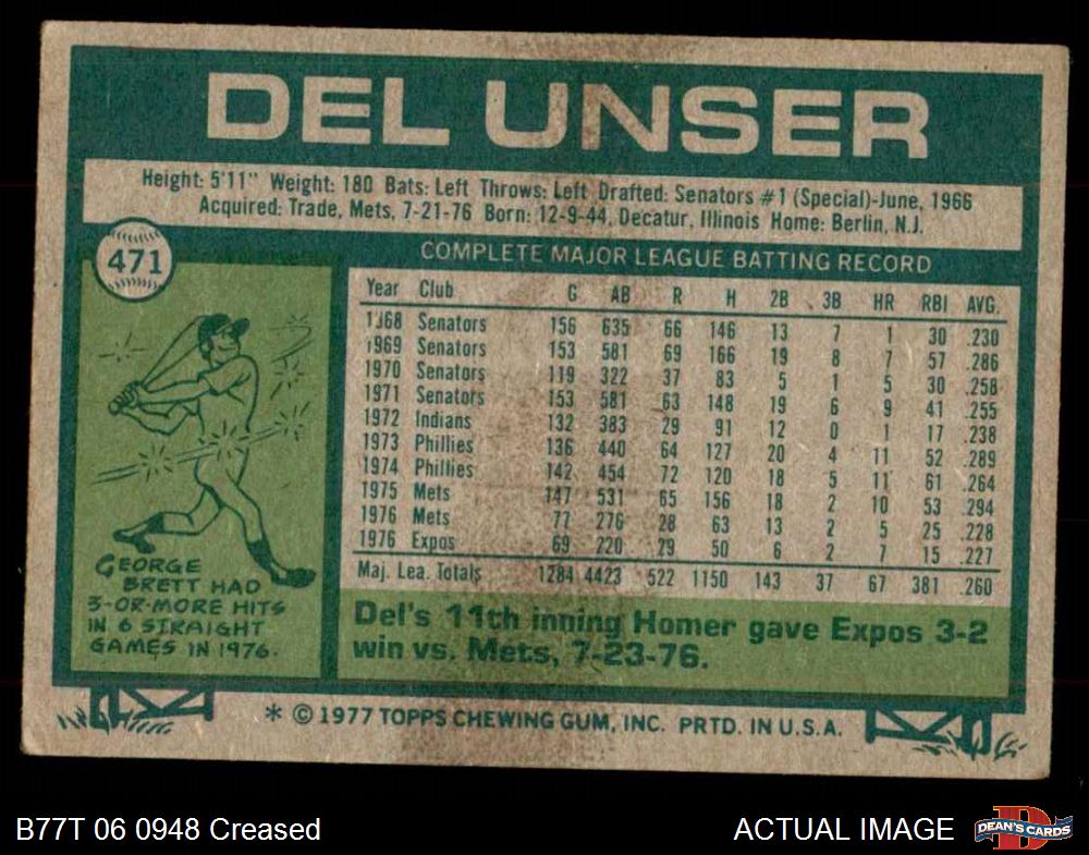 1977 Topps #471 Del Unser Front Thumbnail