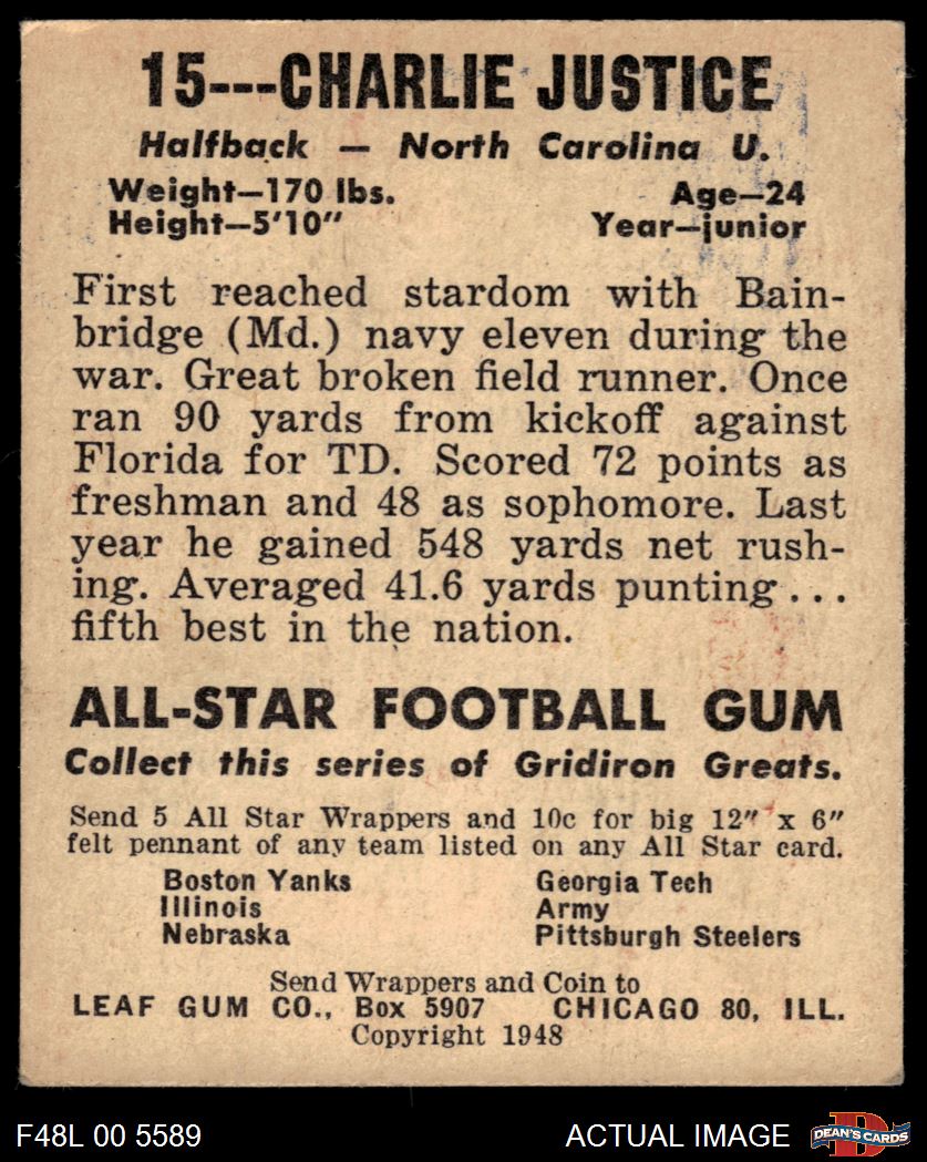1948 Leaf #15 Charlie Justice 4 - VG/EX