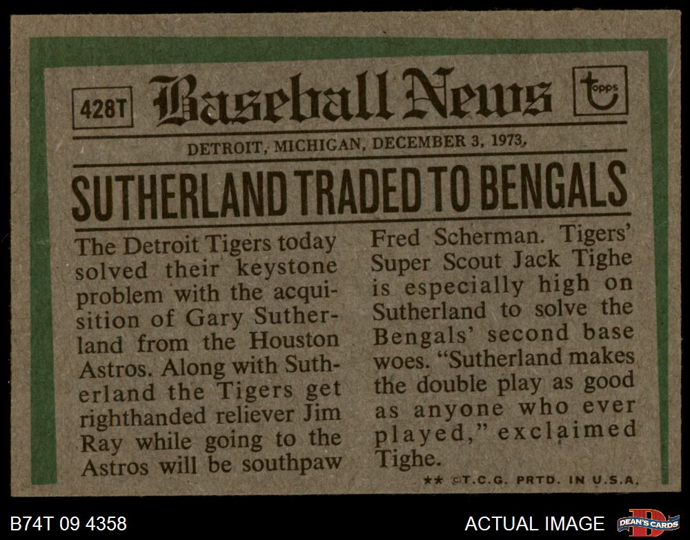 1974 Topps Traded #428 T - Gary Sutherland Traded 5 - EX