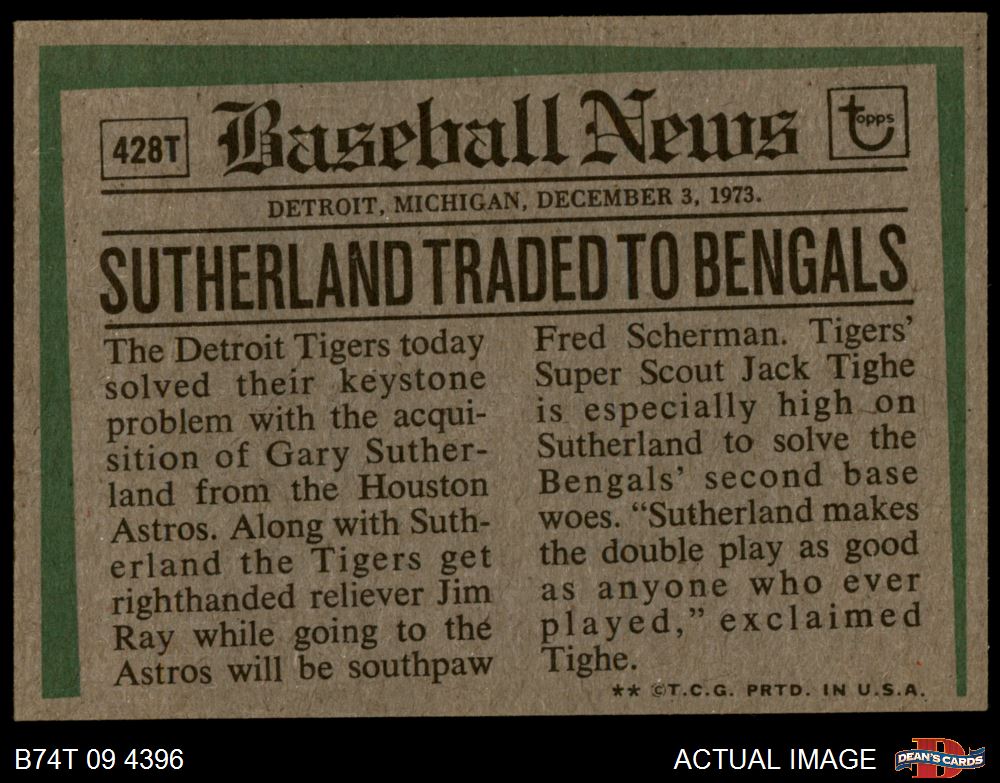 1974 Topps #428 T - Gary Sutherland Traded 5 - EX