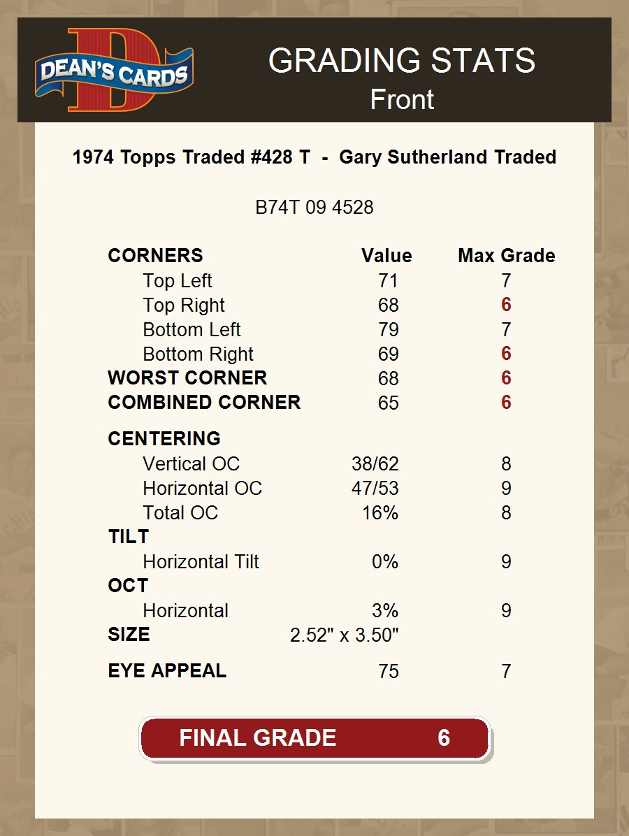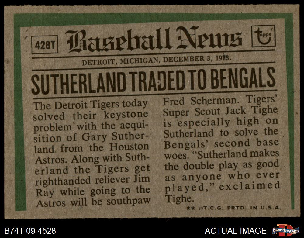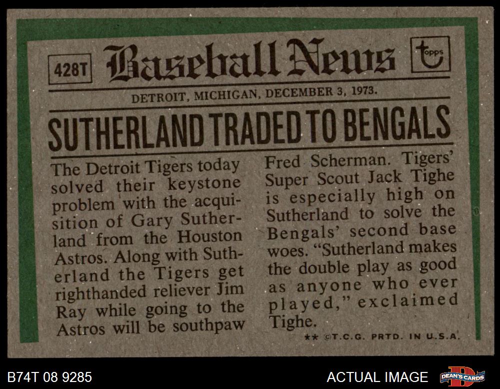 1974 Topps #428 T - Gary Sutherland Traded 6 - EX/MT