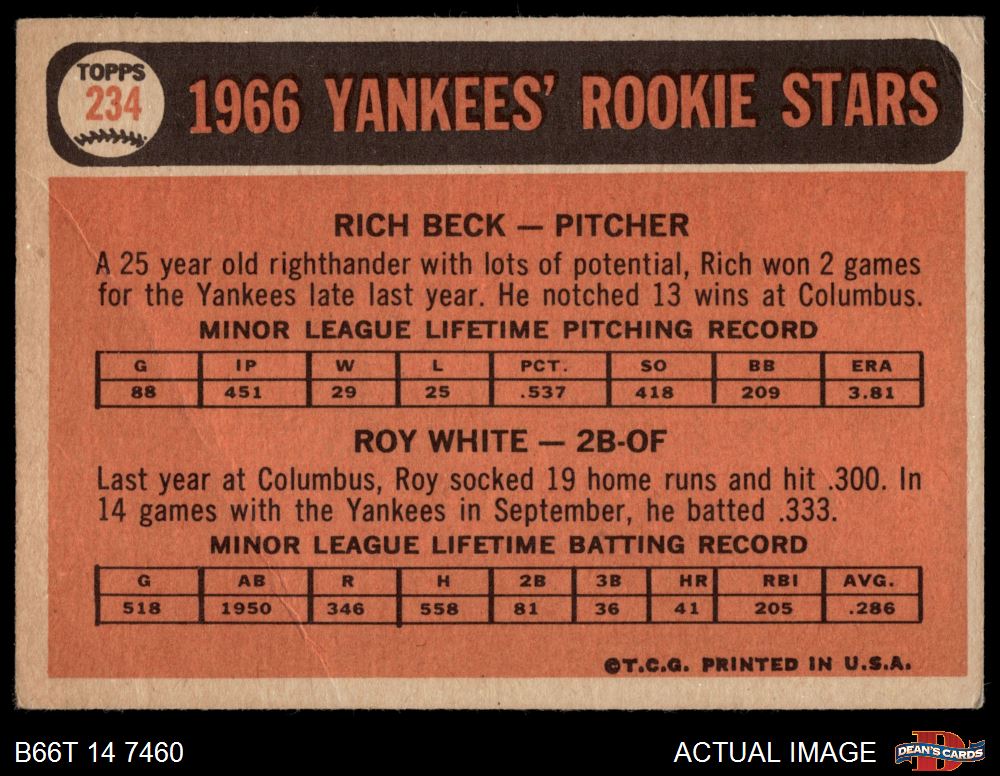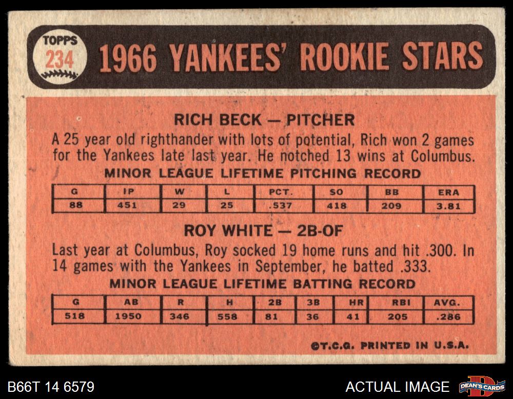 1966 Topps #234 - Roy White / Rich Beck Yankees Rookies 2 - GOOD