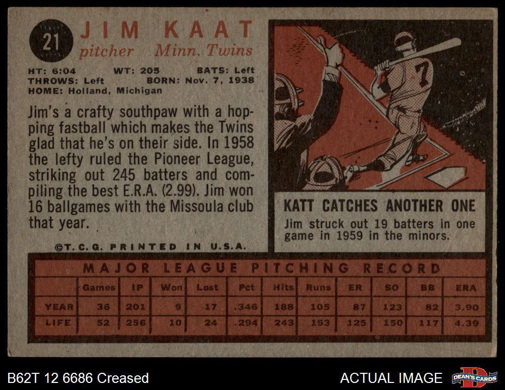 1962 Topps #21 Jim Kaat