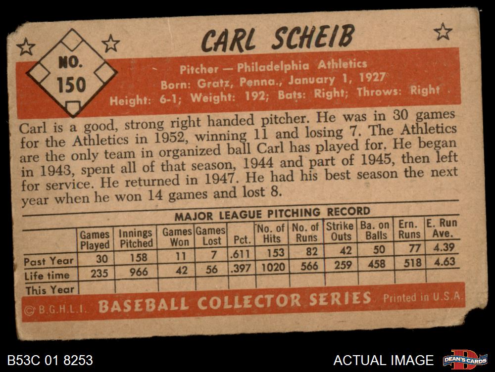 1953 Bowman #150 Carl Scheib AUTHENTIC