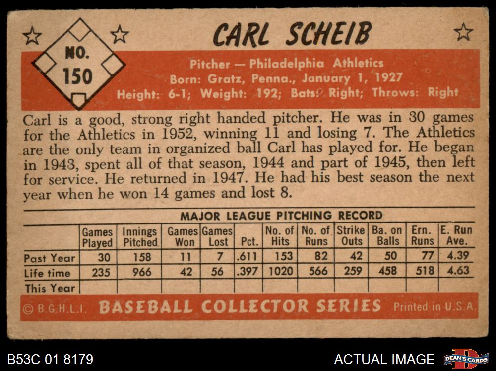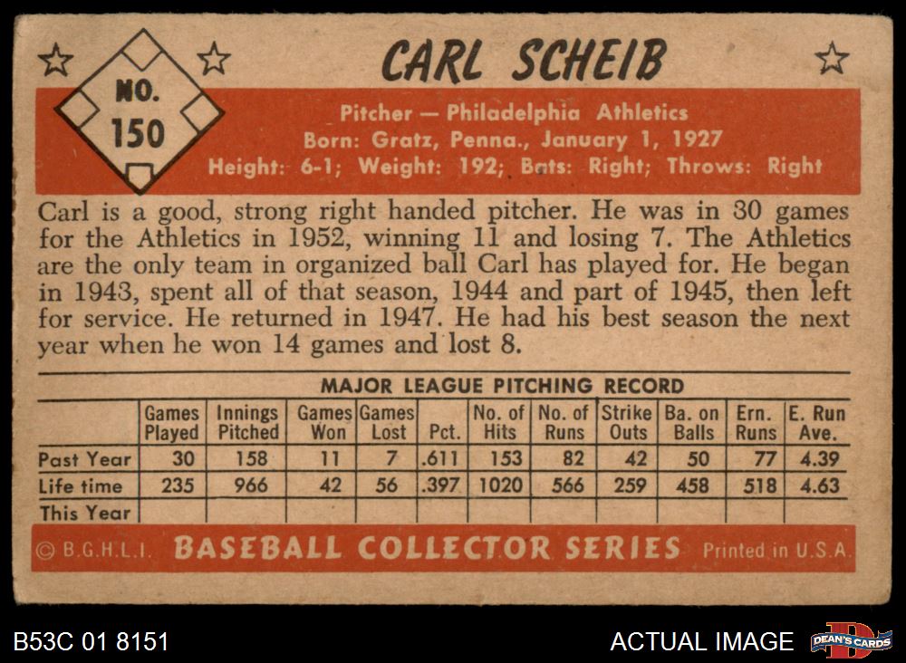 1953 Bowman #150 Carl Scheib