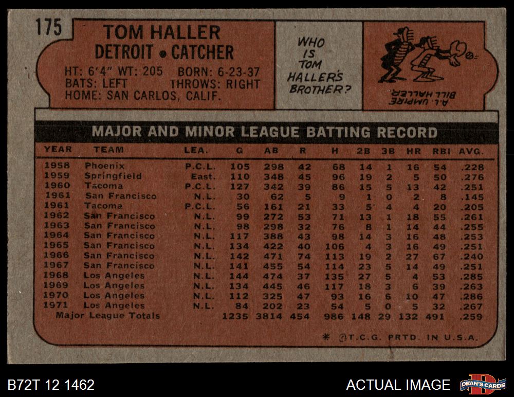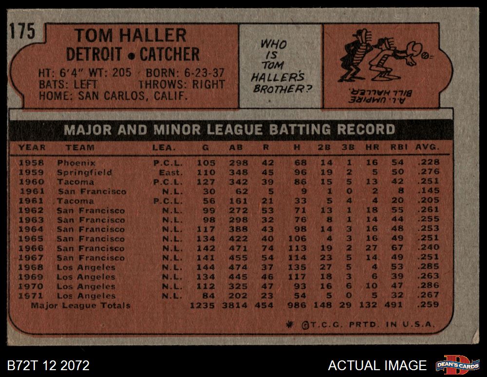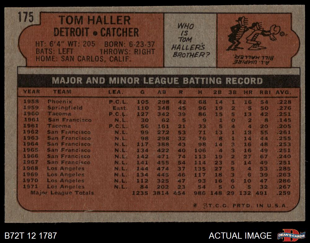 1972 Topps #175 Tom Haller 4 - VG/EX