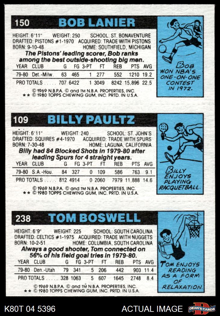 1980 Topps - Tom Boswell / Billy Paultz / Bob Lanier 238 / 109 / 150 5 - EX