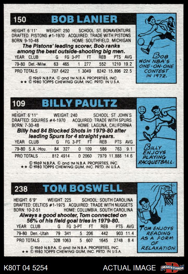 1980 Topps - Tom Boswell / Billy Paultz / Bob Lanier 238 / 109 / 150 7 - NM