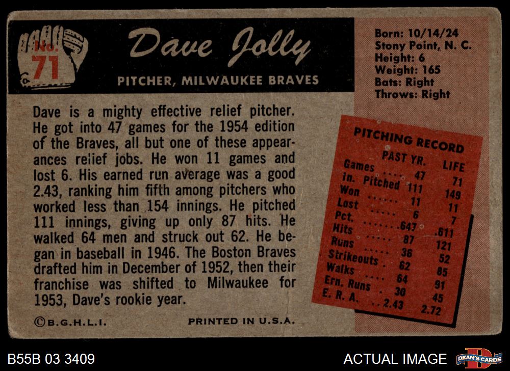 1955 Bowman #71 Dave Jolly 2 - GOOD
