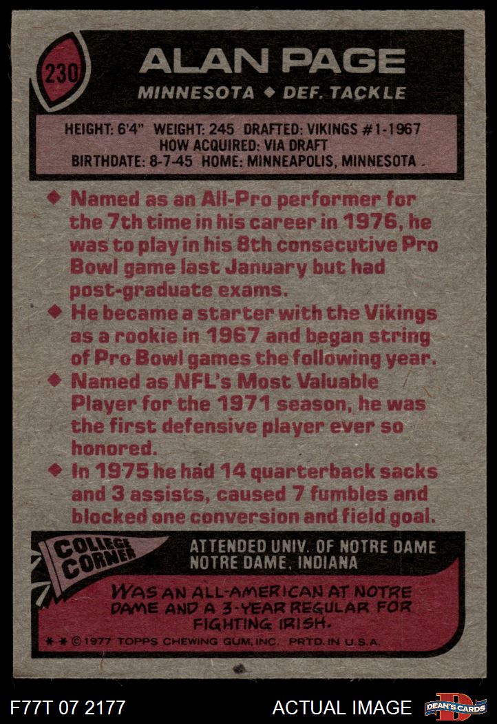 1977 Topps #230 Alan Page 4 - VG/EX