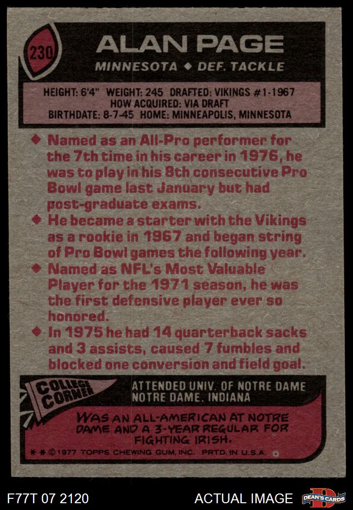 1977 Topps #230 Alan Page 7 - NM