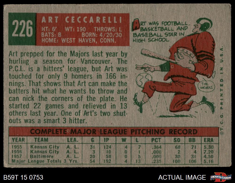 1959 Topps #226 Art Ceccarelli 2 - GOOD