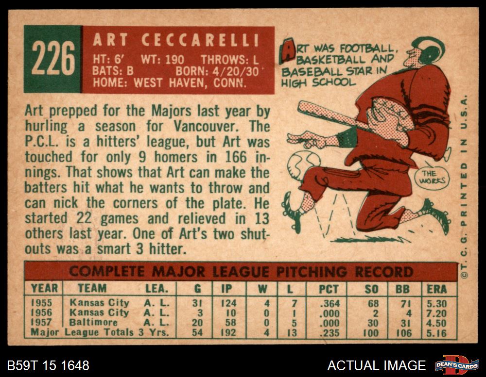 1959 Topps #226 Art Ceccarelli 6 - EX/MT