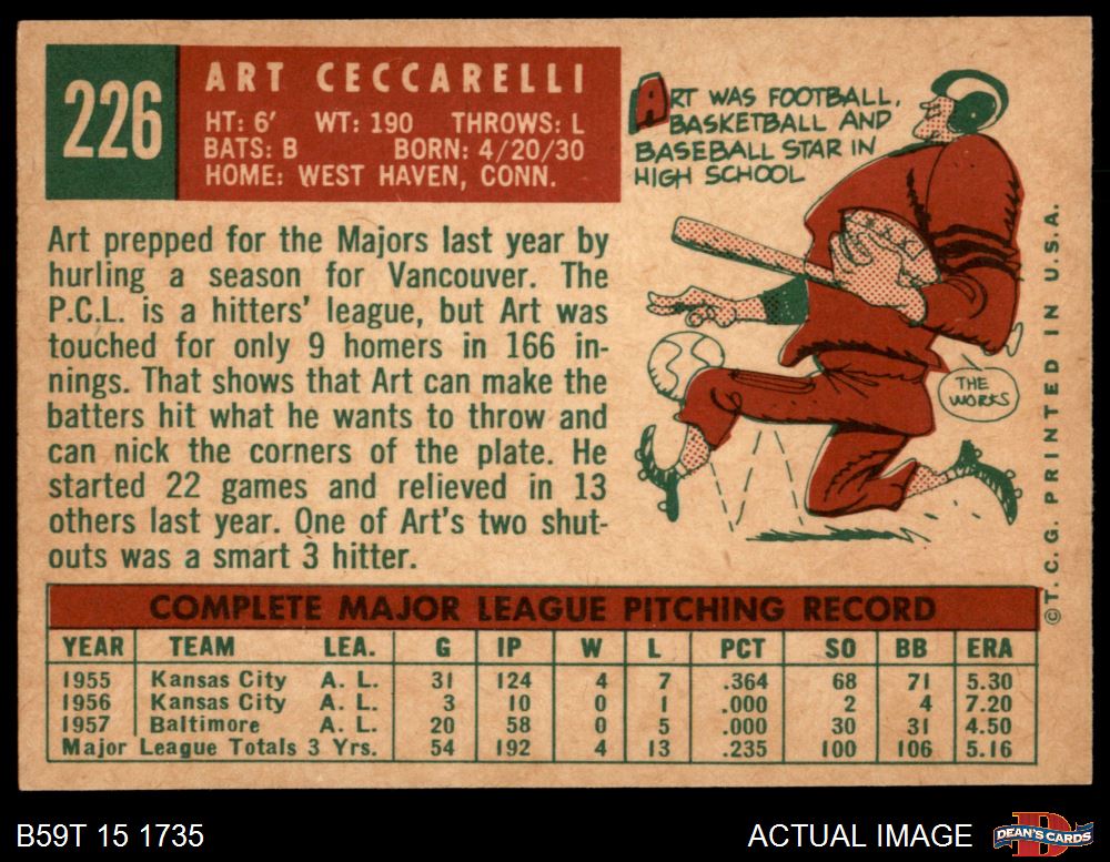 1959 Topps #226 Art Ceccarelli 6.5 - EX/MT+