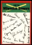 1974 Topps Milwaukee Brewers Red Team Checklist 5 - EX
