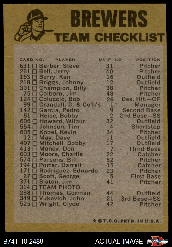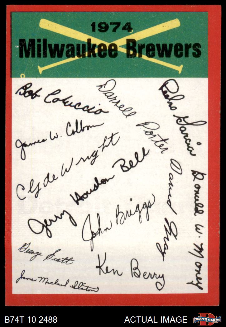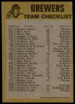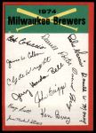 1974 Topps Milwaukee Brewers Red Team Checklist 6 - EX/MT