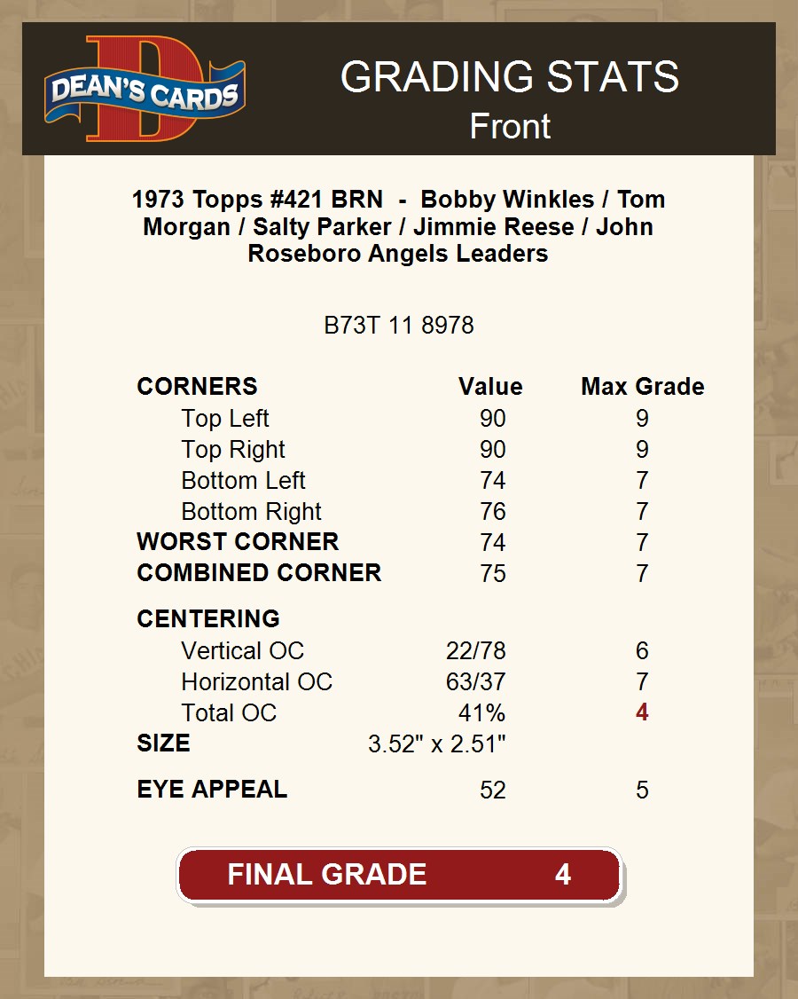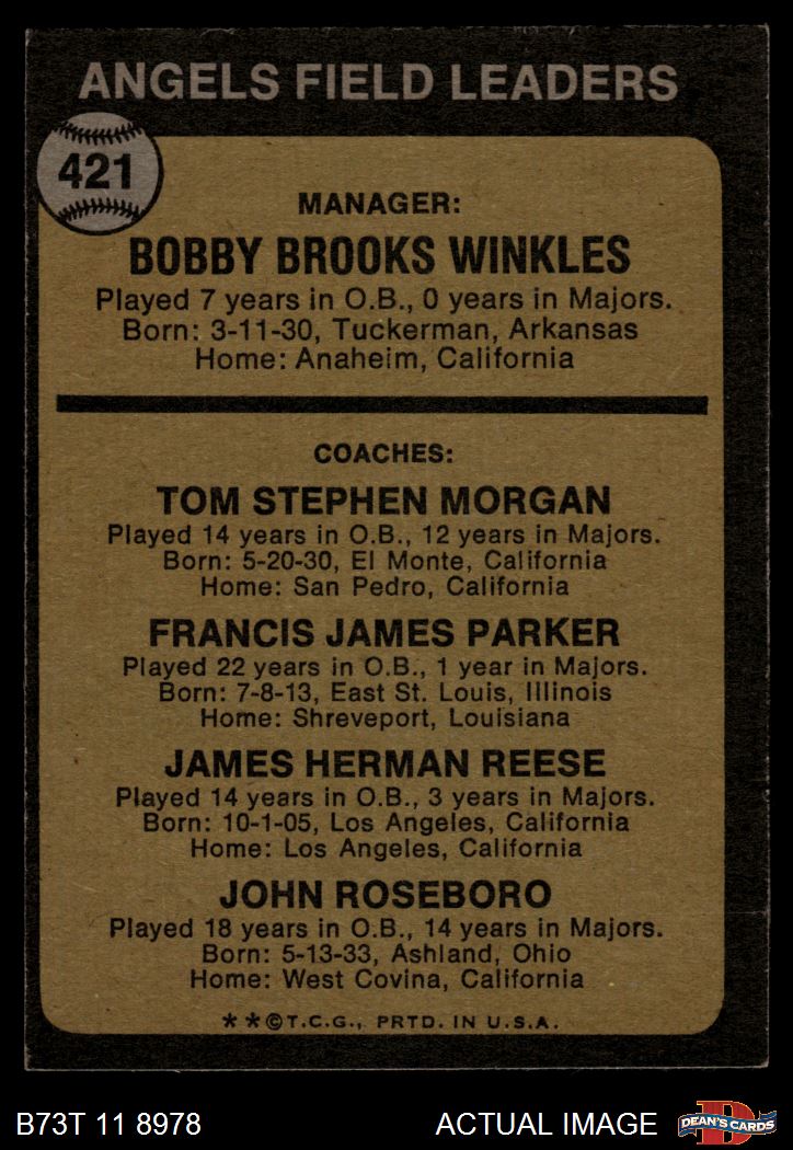 1973 Topps #421 BRN - Bobby Winkles / Tom Morgan / Salty Parker / Jimmie Reese / John Roseboro Angels Leaders 4 - VG/EX